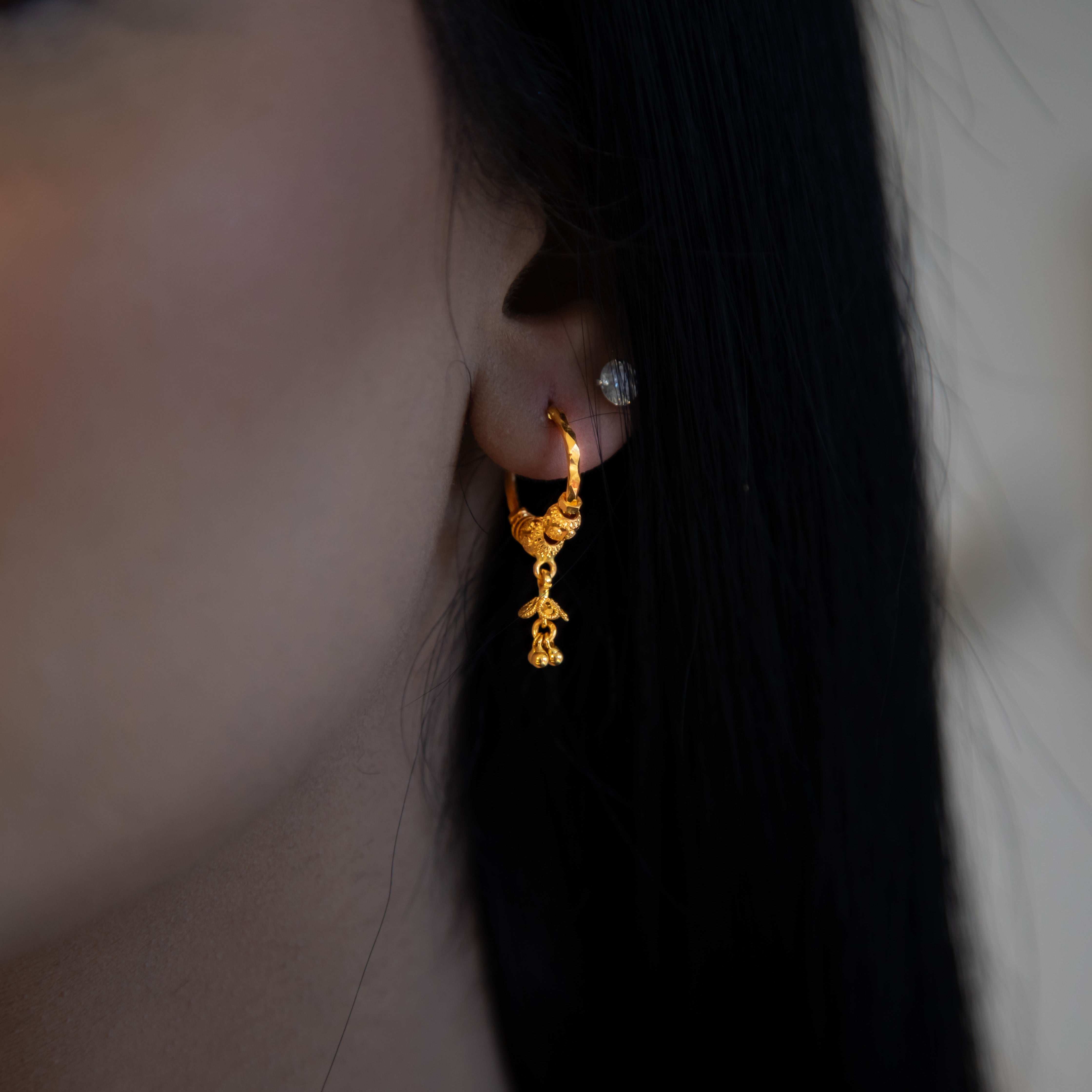 A refined pairing of 22ct gold dangle earrings and necklace, crafted to complement each other with elegance and harmony. This set offers timeless beauty with graceful movement, making it the perfect choice for both special occasions and everyday luxury.