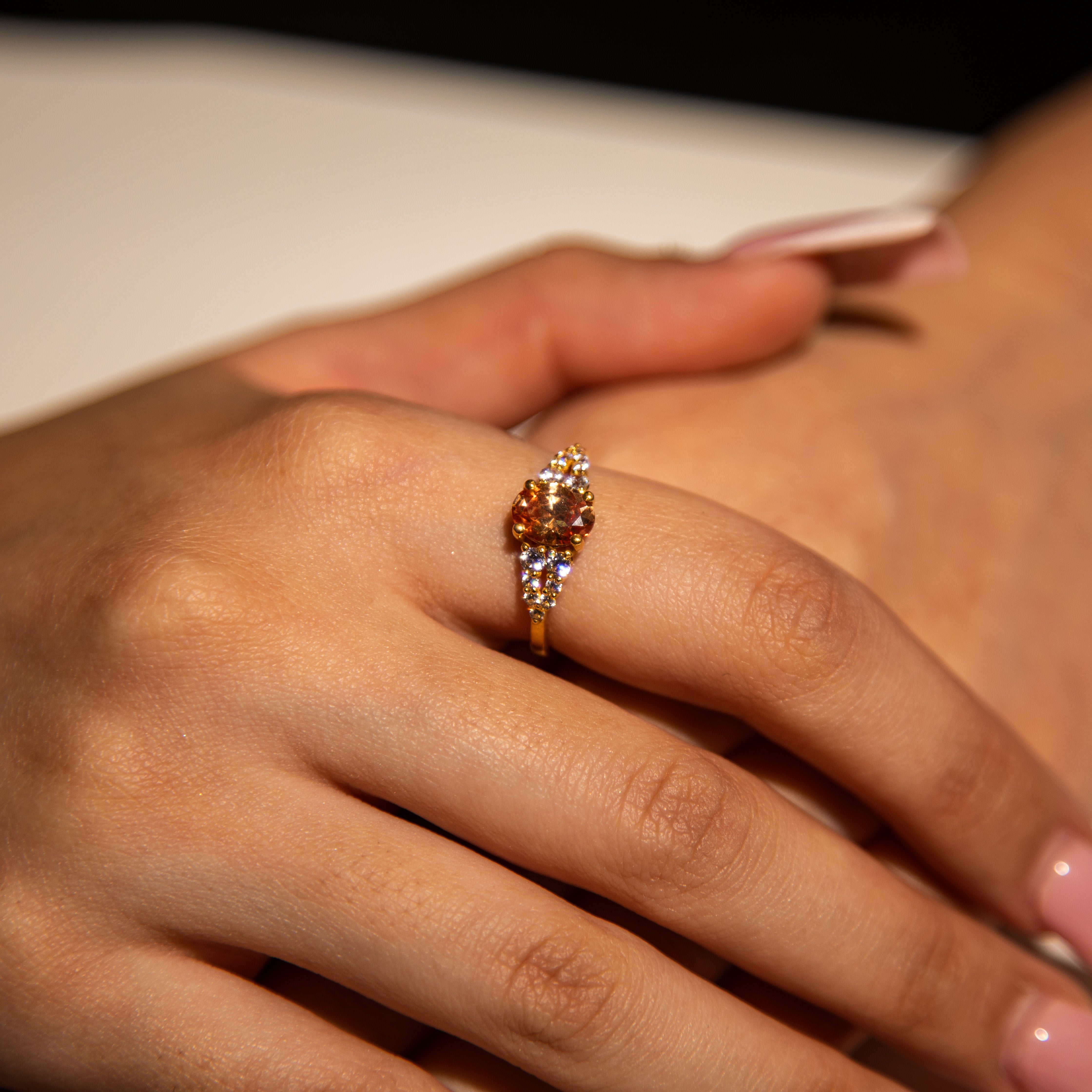 Features a vivid Orange Oval Gemstone with captivating brilliance